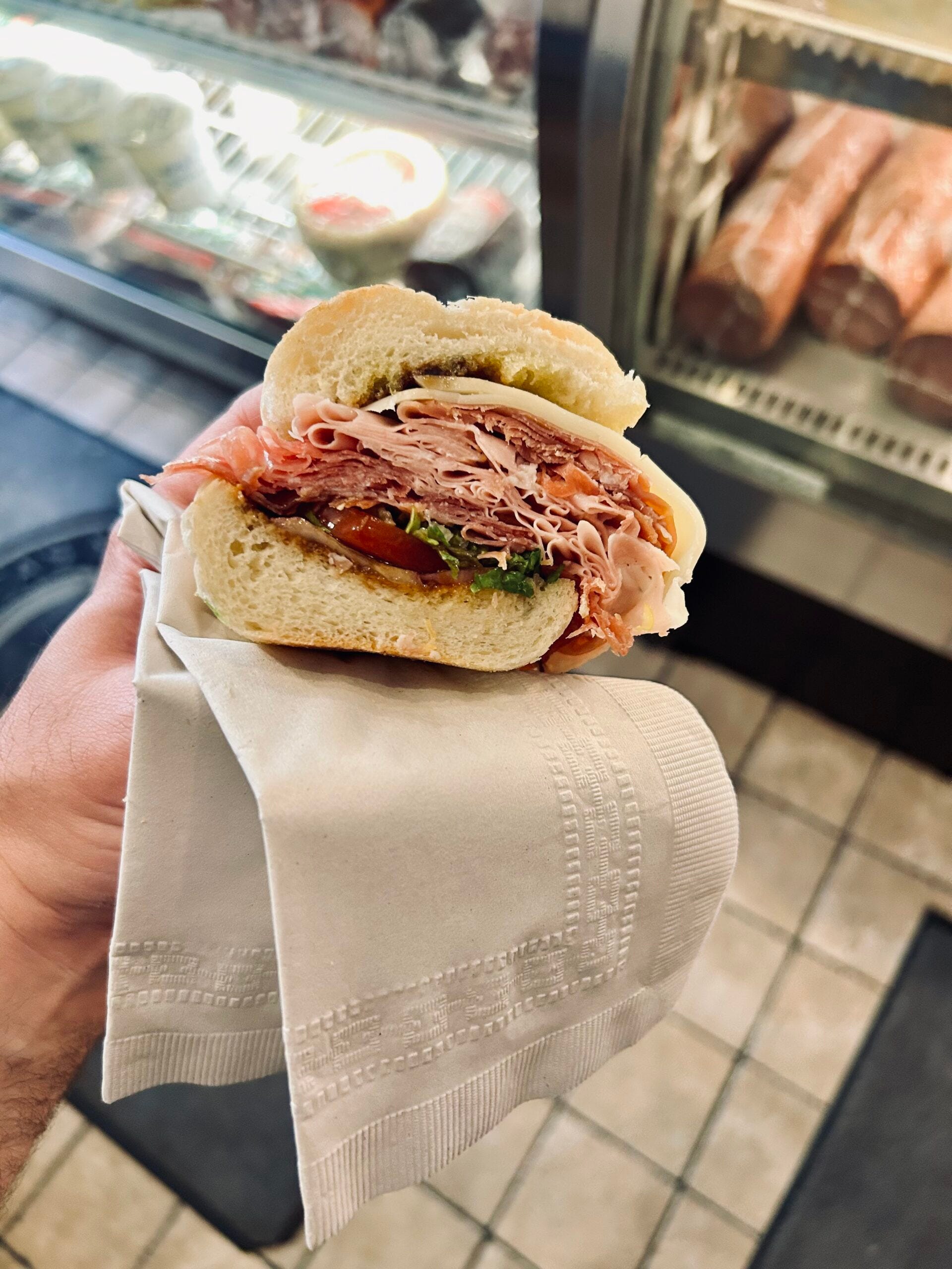 Our next stop was Monica’s Mercato Grocery for sandwiches. We had an excellent Italian sub with fresh thin sliced cold cuts, balsamic vinegar and true fresh baked bread. Even my small sample size was quite filling!